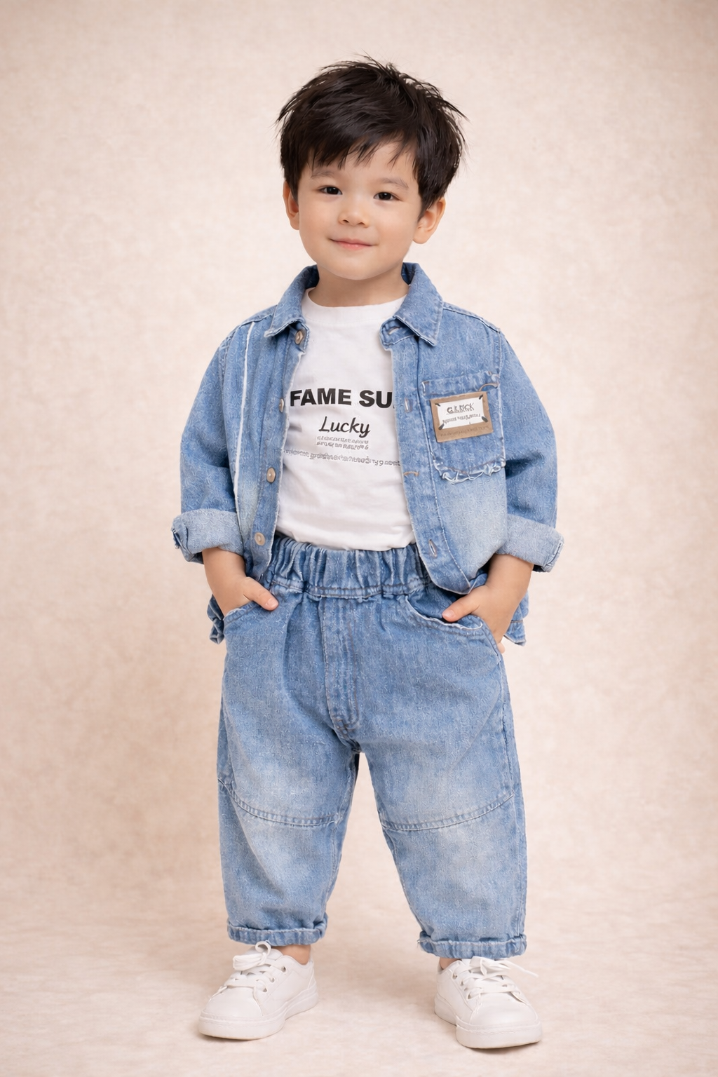Boys Black Denim Outfit Set – Jacket, T-Shirt & Elastic Waist Pants