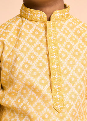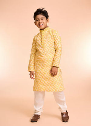 - DescriptionAdorn your festive look with our Sunlit Celebration Kurta Pajama. The vibrant yellow color is just perfect for the festive season. Crafted from the finest silk, this set ensures utmost comfort and a regal touch. Ideal for all celebratory occasions.